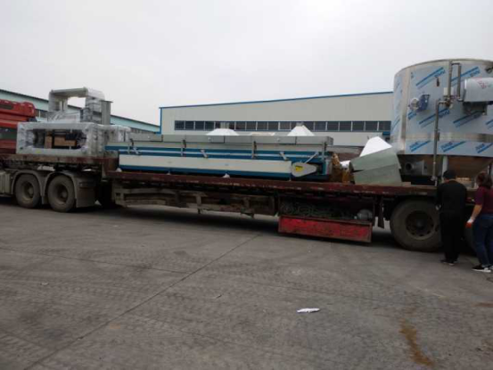 河南600炒機1臺、80冷卻床3臺、煮鍋4臺、中型復(fù)式篩選3臺、3.6米提升機2臺、2.7米提升機2臺 共兩車