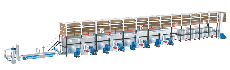 1. 采用封閉式隧道單軌設計 ,在生產(chǎn)中所產(chǎn)生的蒸汽,集中回收排放,解決蒸汽問題。