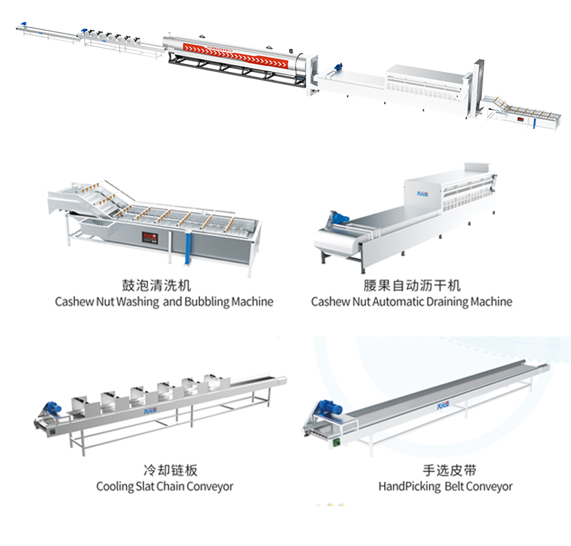 腰果隸屬于進(jìn)口高檔堅(jiān)果,生產(chǎn)工藝極其重要,天元星研發(fā)的腰果生產(chǎn)線精準(zhǔn)把控了產(chǎn)品質(zhì)量,產(chǎn)品從上料、清洗、瀝水、靜置、炒制、篩選、冷卻等實(shí)現(xiàn)了智能數(shù)字化控制,諸多新技術(shù)使產(chǎn)品質(zhì)量穩(wěn)定、產(chǎn)量高、用人少、成本低,生產(chǎn)過程行云流水,外型設(shè)計(jì)美觀大氣。